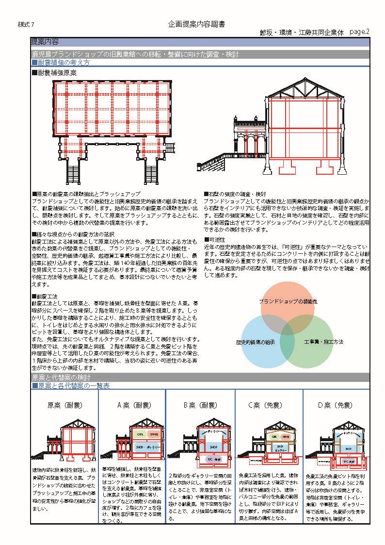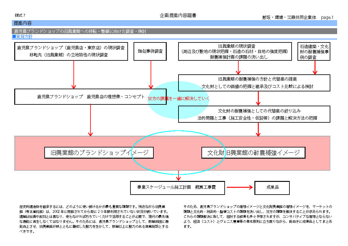 そのため、鹿児島ブランドショップの理想イメージと文化財興業館の理想イメージを、マーケットの課題と文化的・技術的・整備コストの課題を洗い出し、双方の課題を解決することが求められます。