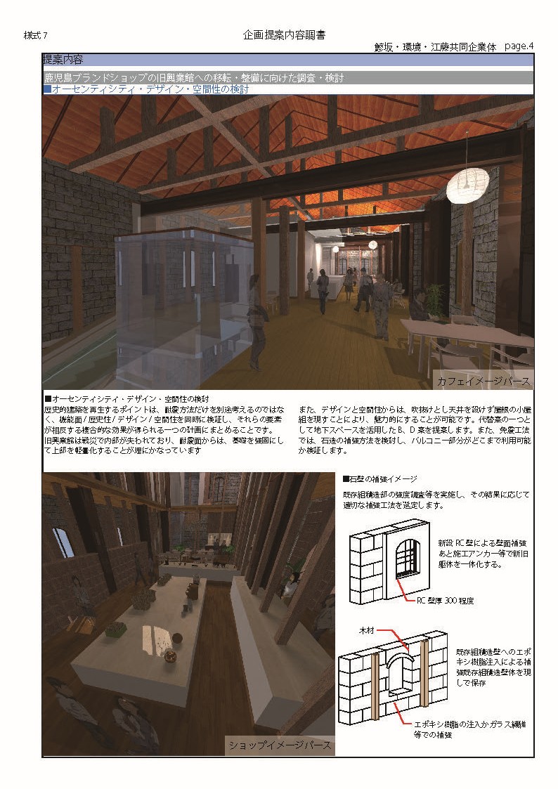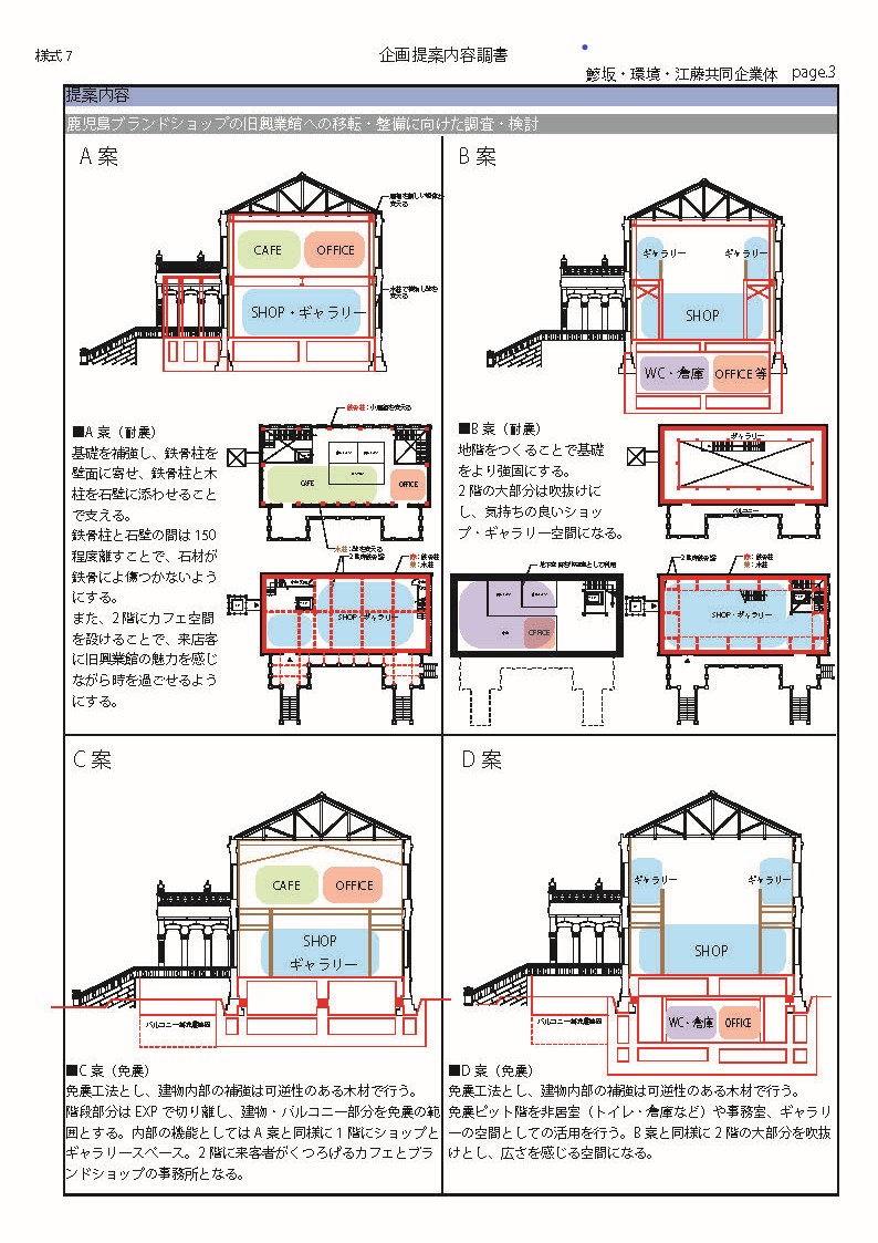 建築は絵画や彫刻とは異なり、使わなければ朽ちていくだけで活用することが必要で、現代の最先端な機能に再生しなくてはなりません。そのためには、鹿児島ブランドショップとして、新築同様に機能向上させ、旧興業館が時とともに醸成した魅力を生かして、新築以上に魅力のある商業施設とするべきです。